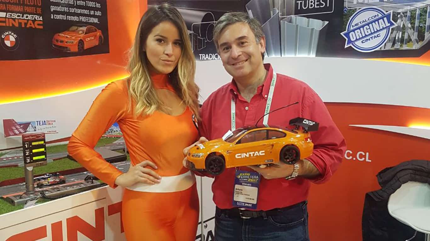 Durante la muestra, los integrantes de las diferentes tiendas de Chilemat a lo largo del país, tuvieron la oportunidad de volver a ser niños en el stand de Cintac, en un entretenido concurso de autos radiocontrolados. Entre los ganadores de las clasificatorias, se sorteó un auto a control remoto profesional, para llevar toda la emoción de la Escudería Cintac a su hogar. El ganador del concurso fue Arturo Rústica de ferretería Ferrus. ¡Felicitaciones!.